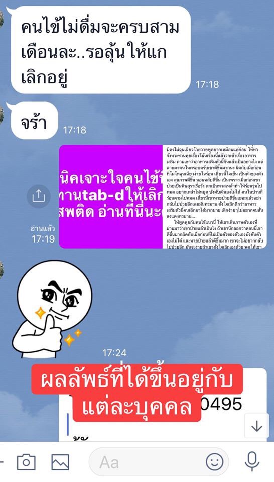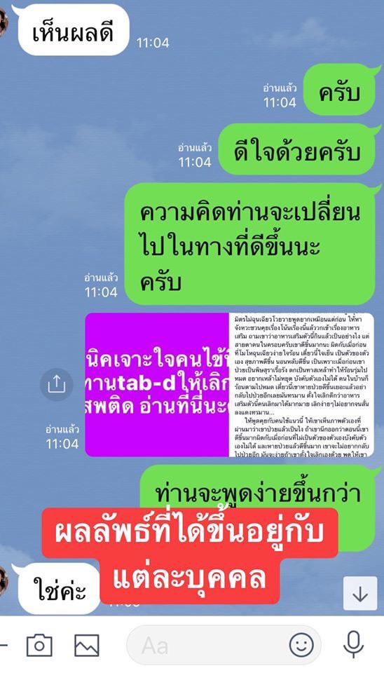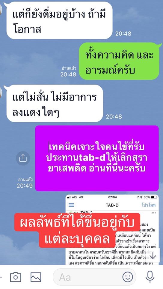 เลิก สุรา ยาบ้า บุหรี่ กาแฟ ต้องมีตัวช่วยไม่งั้นไม่สำเร็จเพราะมีอาการอยากรุนแรงถึงขั้นลงแดง อาหารเสริมล้างพิษสิ่งเสพติดในตับช่วยท่านได้มาก ลดอาการอยากยาจนสั่นแล้วเลิกได้ในที่สุด กลับมาเป็นตัวของตัวเองกินแผงเดียวเห็นผลชัดเจน อาหารเสริมTAB-D