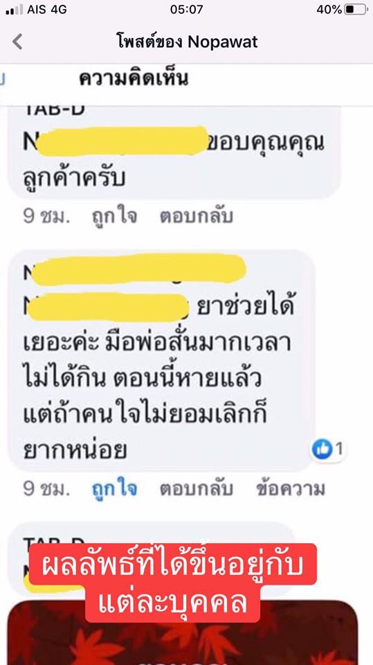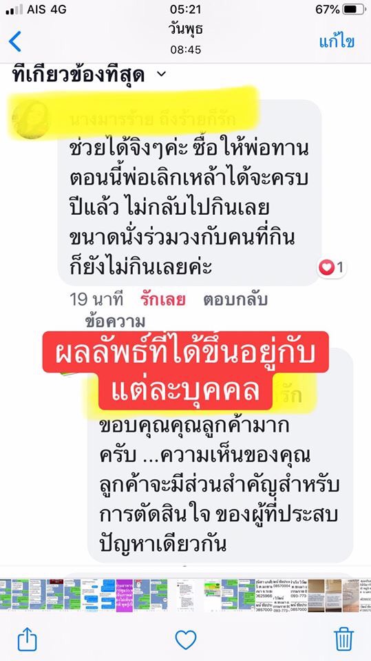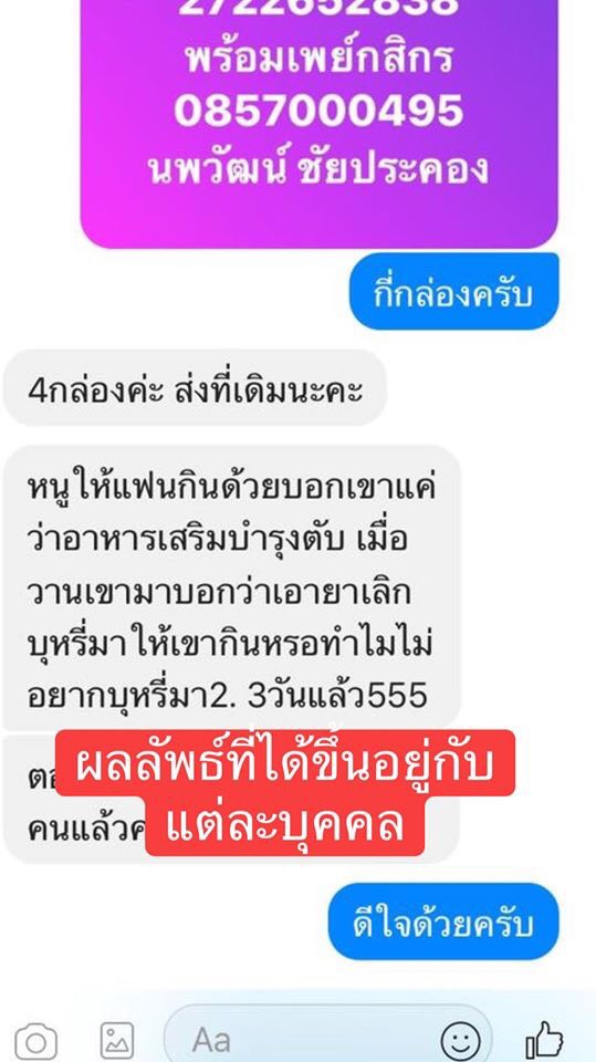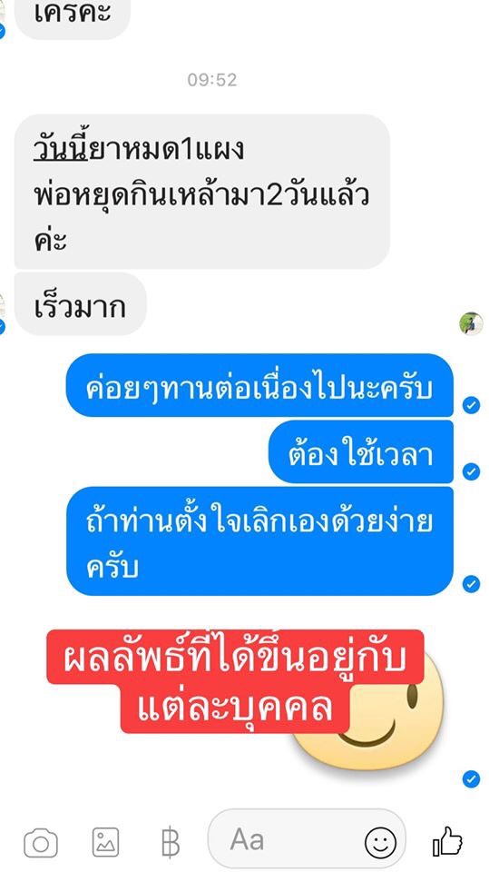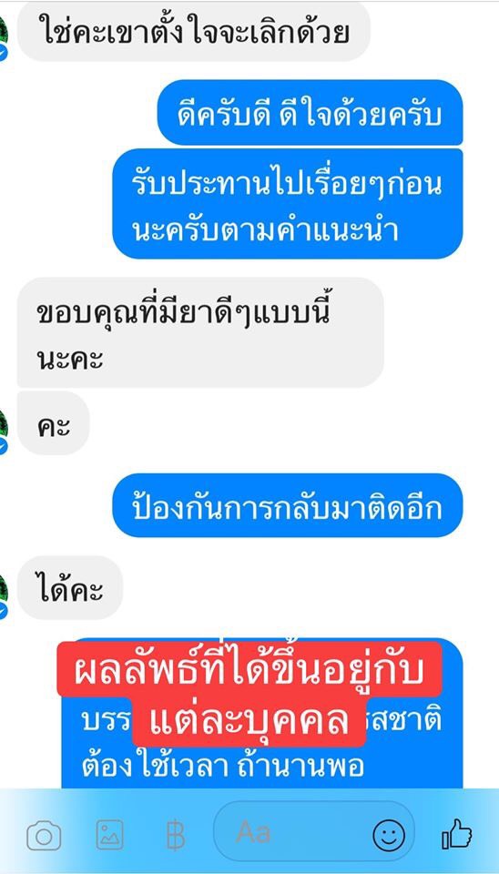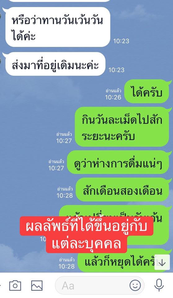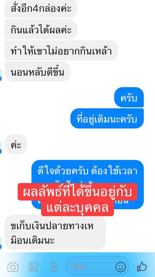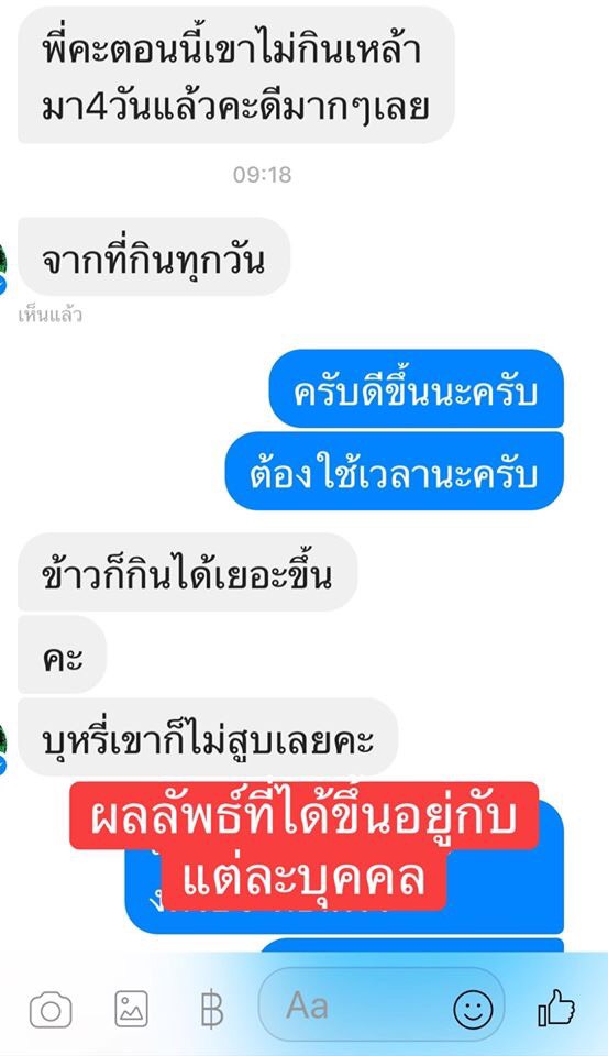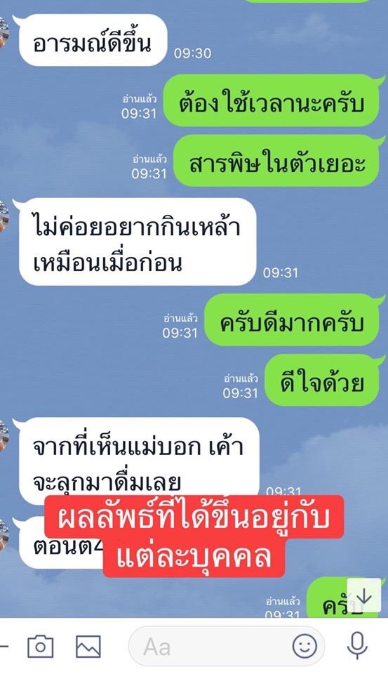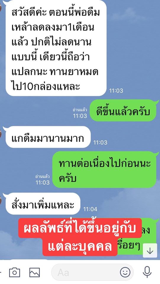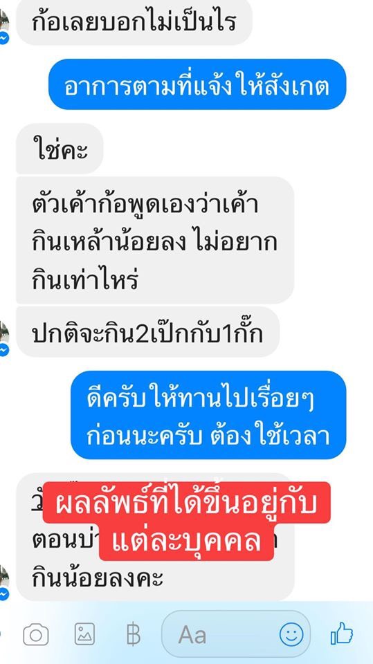 ***อาการเหล่านี้จะดีขึ้นมากจนสังเกตุได้ชัดขึ้นเรื่อยๆแบบผิดเป็นคนละคนเมื่อรับประทานอาหาร เสริมติดต่อกันภายในระยะเวลาแค่ 3 วัน 7 วัน อาการติดบุหรี่ สุรา ยาเสพติดหรือติดกาแฟแม้ กระทั่งติดจำพวกแป้งอาหารมันๆในคนอ้วนหรือสารเสพติดอื่นๆ จะสามารถหยุดได้แบบไม่มีอาการลง แดงขาดไม่ได้อีกต่อไป เหมือนหยุดสูบ หยุดเสพ หยุดกิน หยุดดื่มได้เอง เสพก็ได้ไม่เสพก็ได้ แตกต่างจากที่ผ่านมาที่ไม่สามรถหยุดได้ต้องกลับไปเสพอีกทุกที เมื่อดีขึ้นมากขอให้รับประทาน ติดต่อกันจนหายดีและสามารถเว้นรับประทานแบบติดต่อกันแต่กินพยุงอาการไปเรื่อยๆเพื่อไม่ให้ กลับมาเป็นอีกหรือเสพอีกแบบนานแค่ไหนก็ได้ไม่มีอันตรายเพราะเป็นสารอาหารตามธรรมชาติที่ ร่างกายเคยสร้างได้เองอยู่แล้วในเวลาหนุ่มสาว*** |